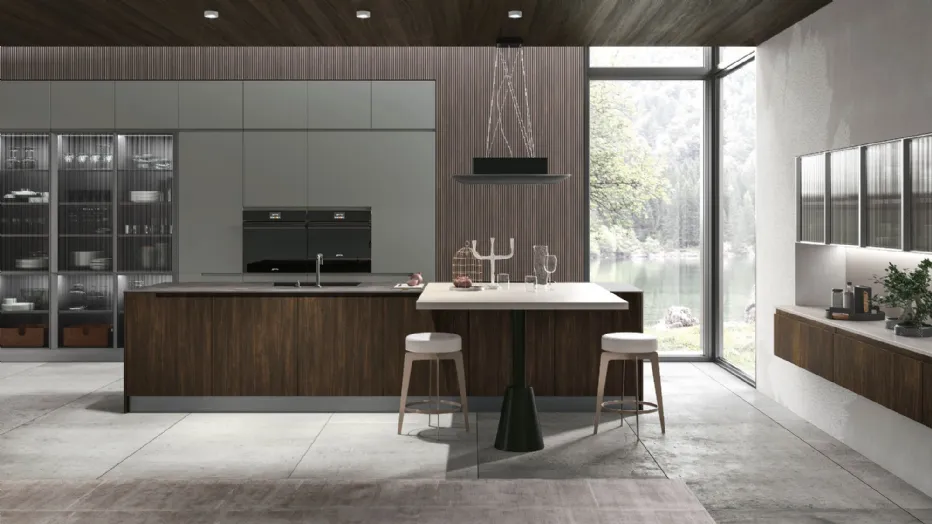 La cucina Karma si distingue per la sua versatilità e stile, perfetta per ambienti moderni e integrati con il living.